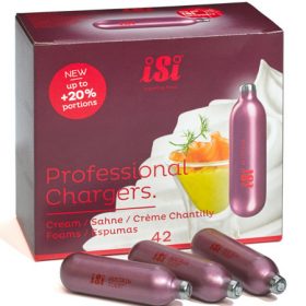 facility has the ISO 9001 certification, offering an assurance to the consumer of purity and quality. Each charger is certified with 8.4 grams of Nitrous Oxide for the highest level of tasteless gas propellant for even the most subtly flavoured foams and creams. Each box contains 10 charger bulbs and these chargers are compatible with all of the iSi™, CreamWhip™ or QuickWhip™ whipped cream dispensers found on our site. Buy these cartridges with an confidence of the highest quality!